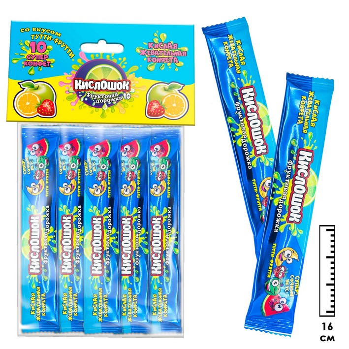 Кислая жевательная конфета Кислошок - фруктовая дорожка 10 со вкусом тутти-фрутти (Россия) 120г61,33 руб. за штуку (в упак. 36 шт.) |